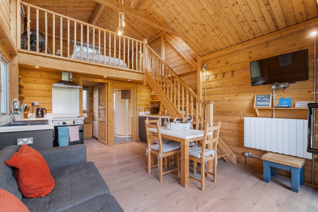 Pine Lodge is perfect for families of 4, couples wanting extra space or mixed groups. Featuring a mezzanine double bedroom, separate bunk bedroom with full-sized beds, shower room, spacious fully equipped kitchen, cosy lounge and TV. Outside you have child-friendly decking right on the lakeside, with stunning water views, garden and BBQ area.